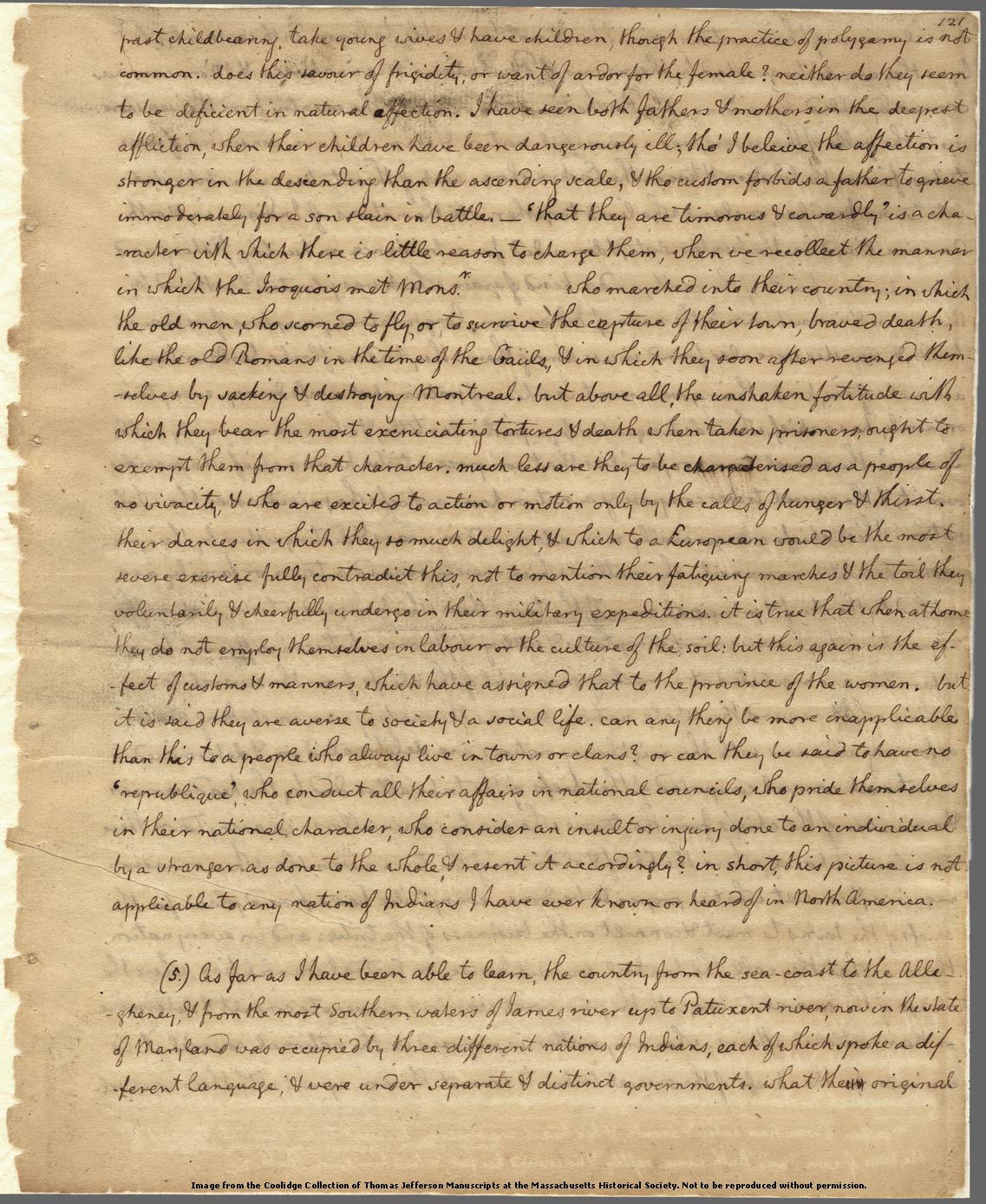 Manuscript page 121, "past childbearing, take young wives..." (Appendix 1, Queries 6 and 11)