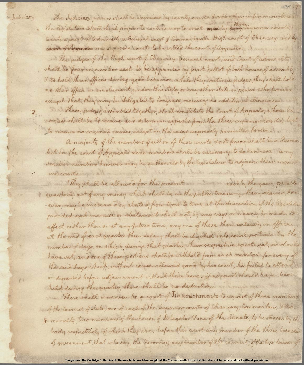 Manuscript page 135, "The Judiciary powers shall be exercised..." (Appendix 2)