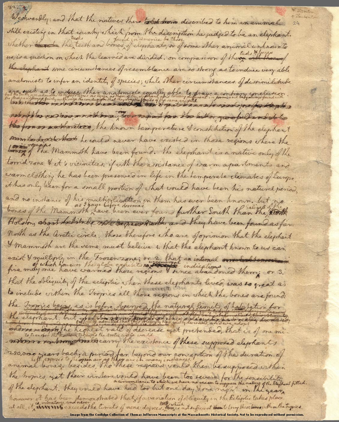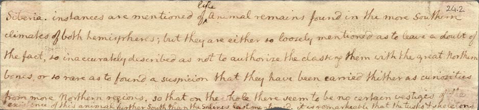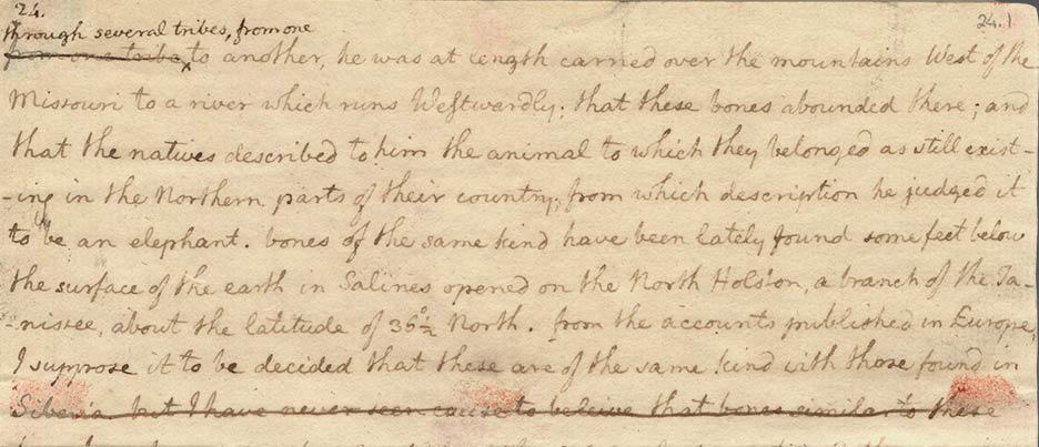 Page 24 had three attachments- one tab (24.1) and two paste-downs (24.2 and 24.3). Attachment 24.1 has writing on both sides and was affixed to the top of the full-page. Attachment 24.2 only has writing on one side and was affixed to 24.1 as a revision of the text it concealed. Attachment 24.3 only has writing on one side and is a revised version of the text it concealed. When reading this page, one must flip up Attachment 24.2 to read the verso before continuing on with the full page.
