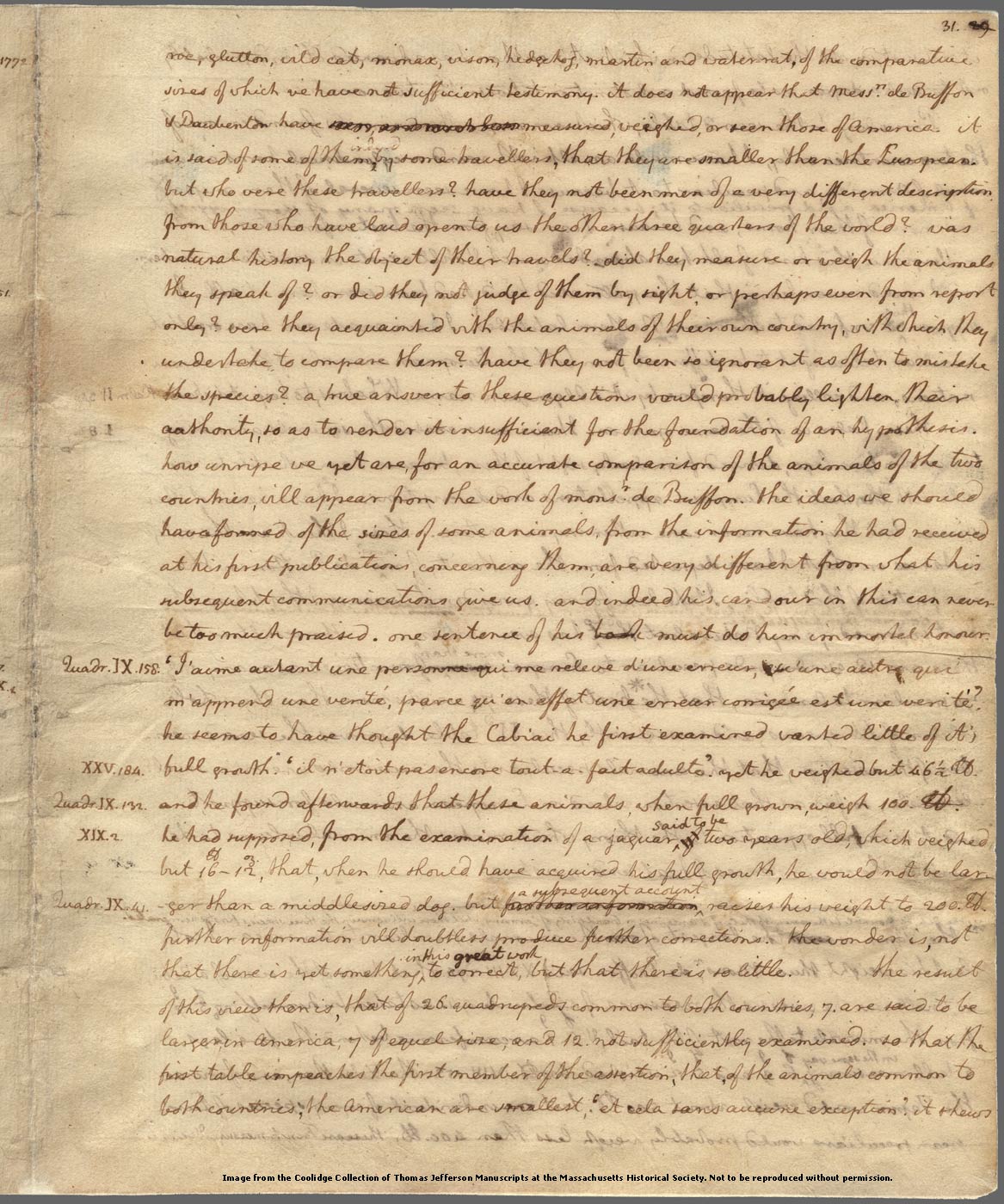 Manuscript page 31, "roe, glutton, wild cat, monax, vison..." (Query 6)