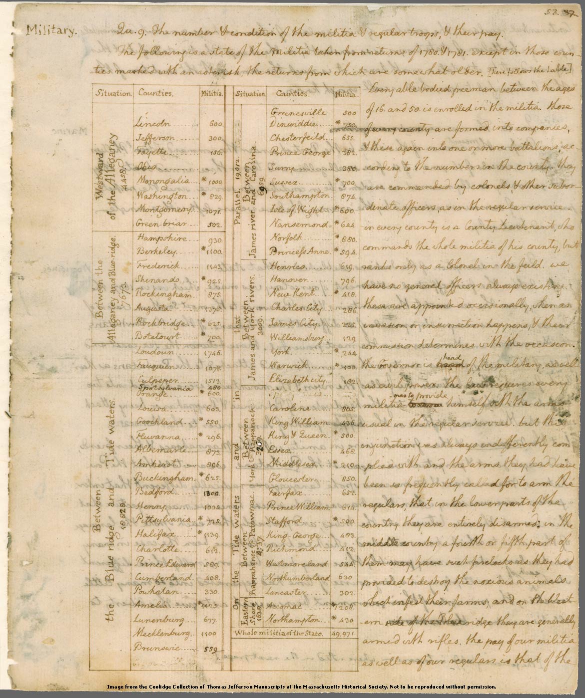 Manuscript page 53, "The following is a state of the Militia..." (Query 9)