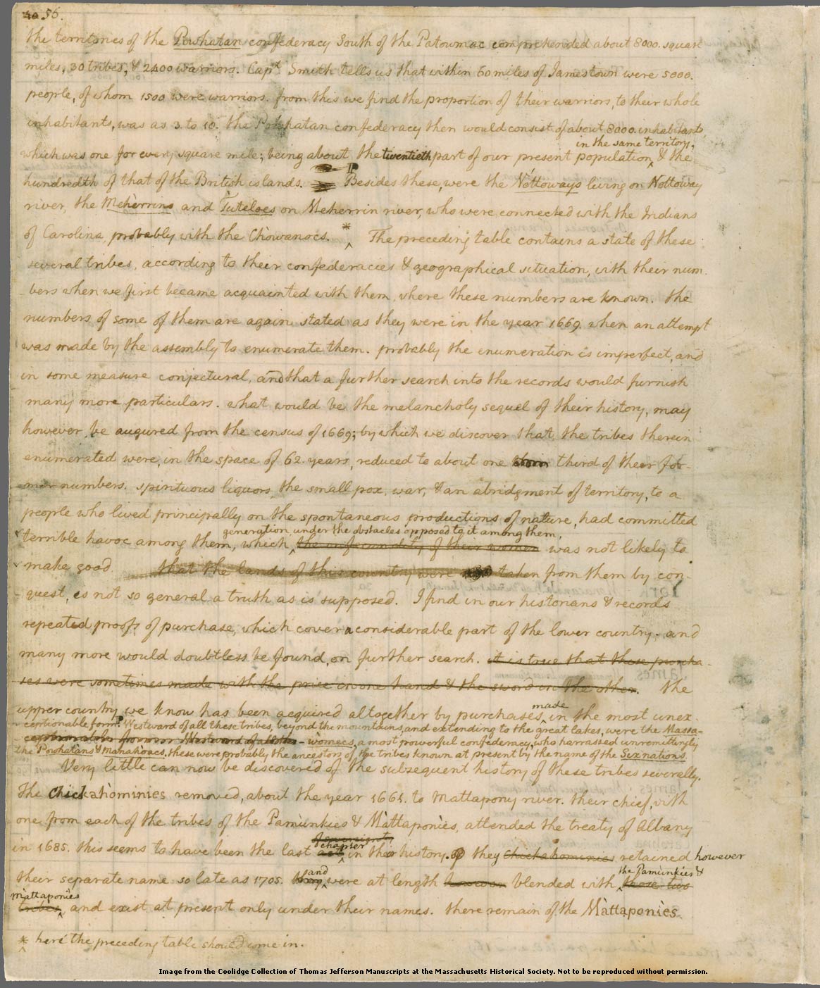 Manuscript page 56, "the territories of the Powhatan confederacy..." (Query 11)