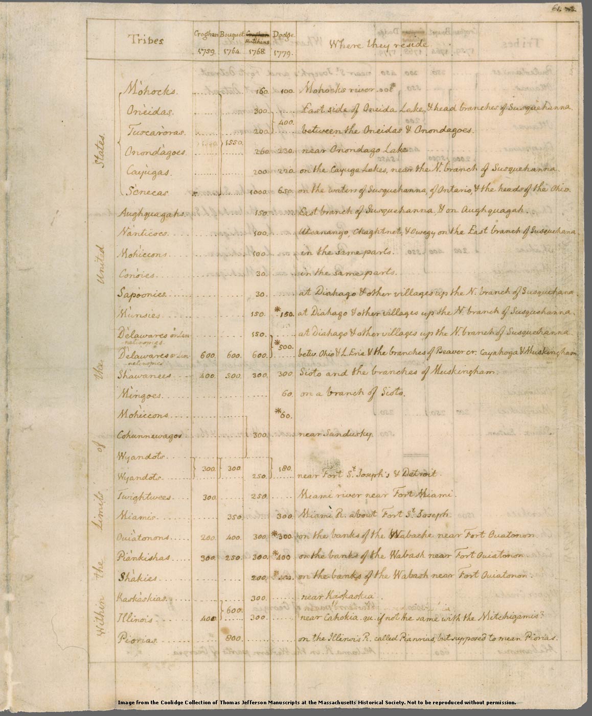 Two lists of Native American tribes copied by Thomas Jefferson