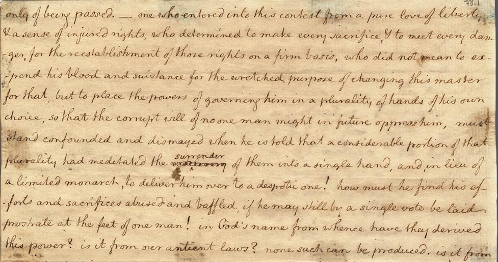 Page 78 had two tab attachments (78.1 and 78.2). Each attachment has writing on both sides. Attachment 78.1 is a long addition to the text. In its flipped down position, Attachment 78.1 completely concealed Attachment 78.2. When reading this page, one must flip up Attachment 78.1 to read the verso and then continue directly to the recto and verso of Attachment 78.2 before continuing on with the full-page.