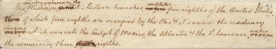 Page 9 had four tab attachments (9.1, 9.2, 9.3 and 9.4.) Attachment 9.1 is a slim piece of paper that only has text on one side and was affixed to the upper left-hand corner of Attachment 9.2. Although Attachment 9.1 only has writing on one side, like a paste-down, it must be flipped up, like a tab, to allow the reader to continue reading the text on Attachment 9.2. Attachments 9.2, 9.3 and 9.4 have writing on both sides. When reading this page, one must flip up Attachment 9.2 to read the verso before continuing on to the recto of Attachment 9.3. The same action must be completed for Attachments 9.3 and 9.4.The text flows directly from the verso of one attachment to the recto of the following attachment. At the end of Attachment 9.4, return to the full-page.